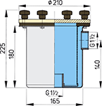 High capacity filter. Can be mounted below the waterline (directly to male inlet) or remotely using the optional brackets. Supplied with G 1-½ threaded connections: stainless steel housing and filter element.