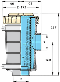 Cooling water strainer, provided with a transparent cover - allowing for easy inspection of the filter without dismantling. Cleaning of the filter can be achieved quickly and easily. Due to the large active surface however, the filter seldom needs to be cleaned.