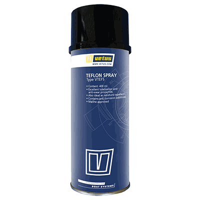 Vetus Teflon based spray for cleaning, protecting and lubricating all metal parts around the engine and boat.